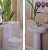 Thames: Modern compact four piece bathroom suite with 2 faucet hole basin.