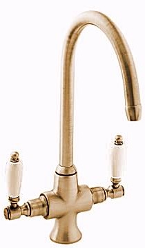 Georgian Monoblock Kitchen Sink Mixer with 1/4 Turn, Swivel Spout and Diverted Flow in Gold.