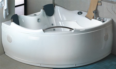 Whirlpool bath for two people with thermostatic bath mixer. Size 1510x1510mm. Depth 690mm. Right handed version.