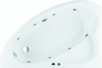 Left Handed Neptune 1500 Blue Corner Whirlpool Bath with chrome whirlpool system.