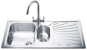 1.5 Bowl stainless steel inset kitchen sink with right hand drainer.
