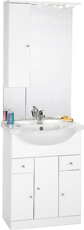650mm Contour Vanity Unit with one piece ceramic basin, mirror, lights, shaver socket and side cabinet.